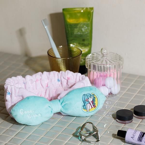 水森亜土のふわふわ手触りでかわいいヘアバンドです。星柄とりぼん型でとってもキュート♪洗顔時やメイク時に大活躍すること間違いなし!ナイトケア時にも◎かわいいヘアバンドで気分も上がりそう☆