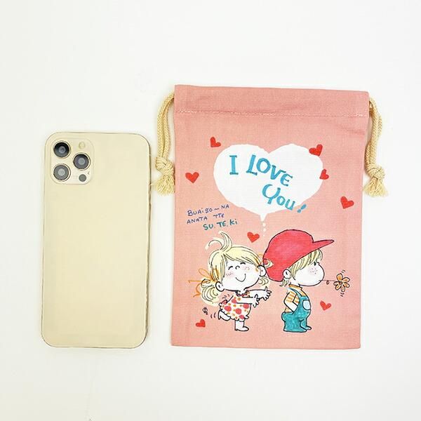 水森亜土 巾着(S) ピンク 日本製