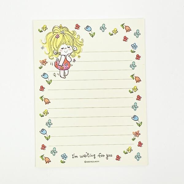 水森亜土のミニレターセットです。亜土ちゃんらしい可愛い女の子デザイン☆ちょっとしたお手紙やギフトに添えても可愛いです☆彡【セット内容:封筒×4枚、レター×8枚入り】【サイズ:封筒6cm×8.9cm、レター11cm×8.3cm】
