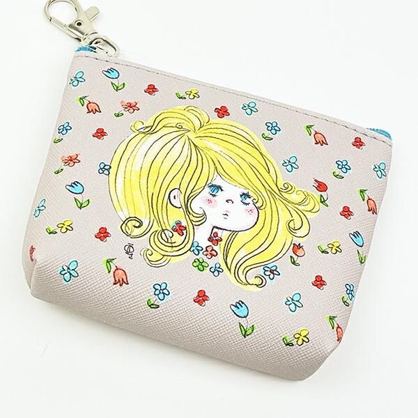リップや目薬など小物を入れるのにぴったりな水森亜土のプチポーチです。フック付きなのでバッグなどに付けられます☆亜土ちゃんらしい可愛い女の子デザイン♪お花がたくさん飛んでいてとってもキュートです☆彡