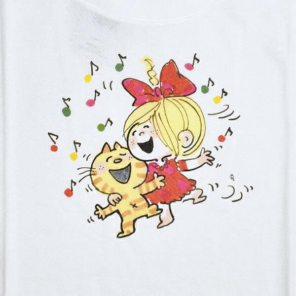 水森亜土 ネコ&ガール 半袖Tシャツ(M) ホワイト アパレル