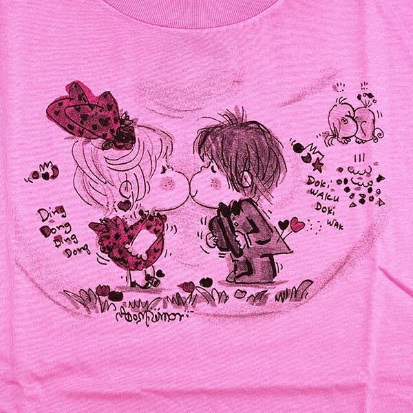 水森亜土 キスリボン 半袖Tシャツ(M) ピンク アパレル