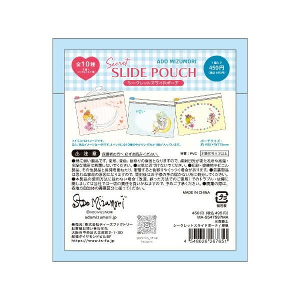 水森亜土のシークレットスライドポーチです。絆創膏や薬をまとめたり、イヤホンやケーブルなどを仕分けするのにちょうどいいサイズ感のスライドポーチです☆あなたはどのデザインが好きですか?美しいデザインから可愛いデザインまで揃っているので、亜土ちゃん好きにはたまりません☆開けるまでどんなデザインが届くかわからないのでドキドキ&ワクワクが楽しめちゃいます♪♪ぜひ色んなものを入れてお楽しみください☆彡全10種類の中からランダムアソートによりいずれか1種類が入ってます。(セット販売ではありません。)