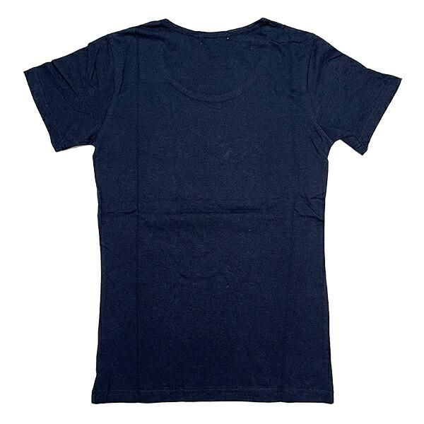 水森亜土 お花の少女柄 プリント半袖Tシャツ(LL) ネイビー アパレル
