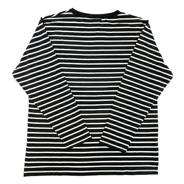 水森亜土 刺繍ボーダーロングTシャツ ハート ホワイト×ブラック 長袖 アパレル